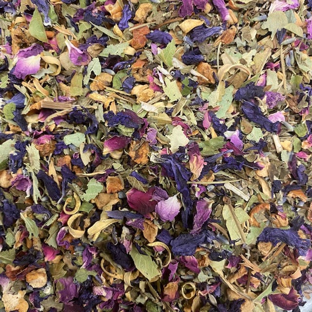 Deze kruiden thee is een ware mix van kruiden en bloemen waaronder lavendel en rozenblaadjes.