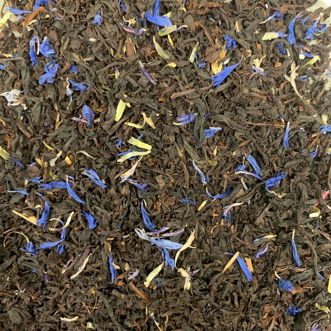 Deze Earl Grey variant met natuurlijke bergamot aroma is voorzien van korenbloesem. De naam Blue geeft de kleur van korenbloembloesem al aan.