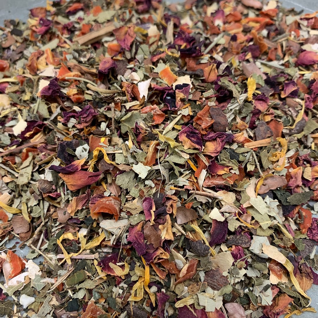 Herfstkruiden: Pure kruidenthee zonder theïne, een lust voor het oog en de mond. Heerlijke herfstkruiden met een zeer lichte touch van karamel peperkoek