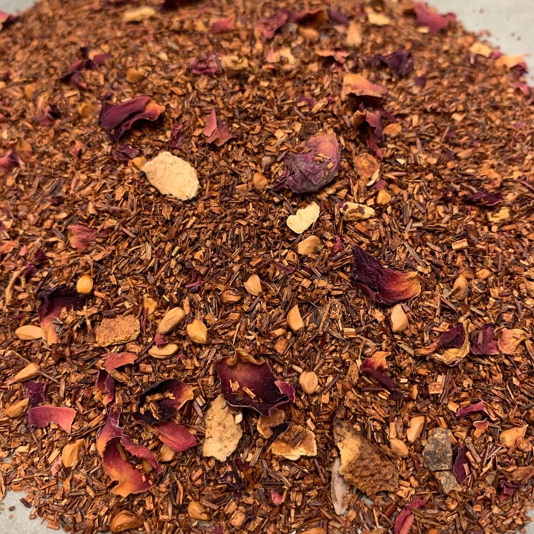 Ingredienten zijn kaneel, rozenblaadjes, rozenbottel en sinaasappelschil.
