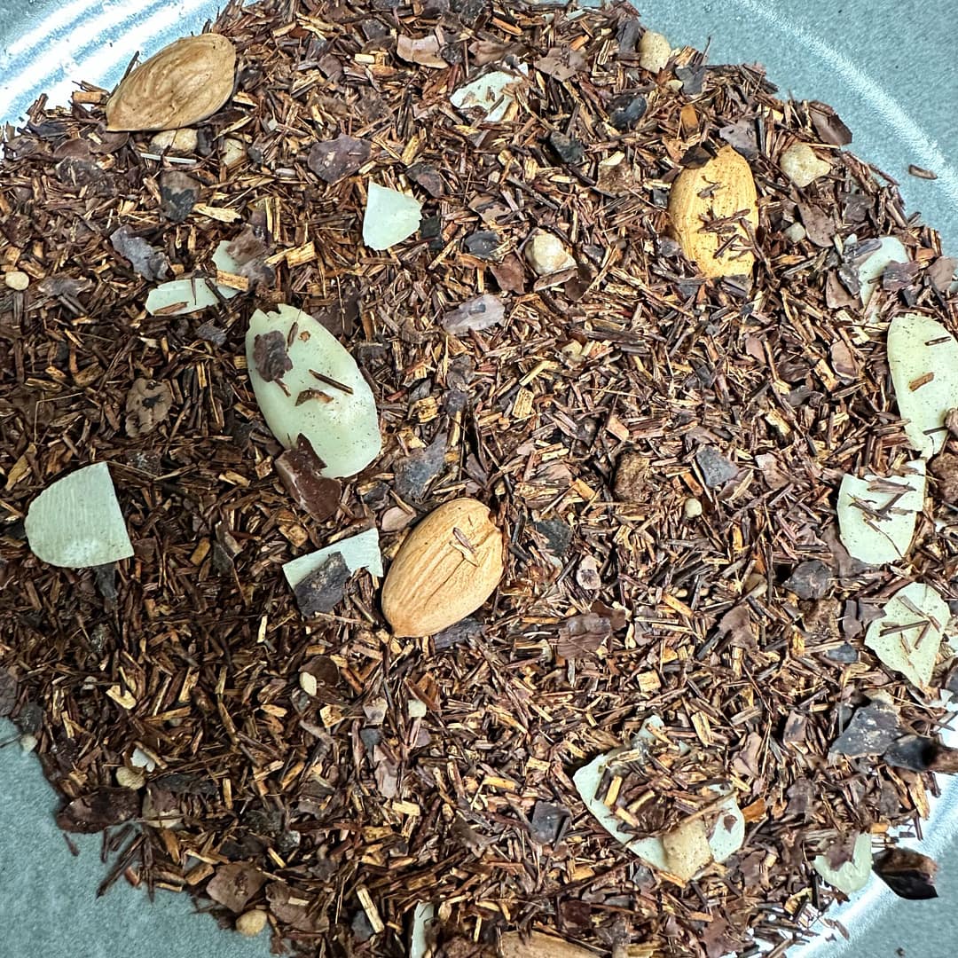 Rooibos met amandelen, cacao en fruit.