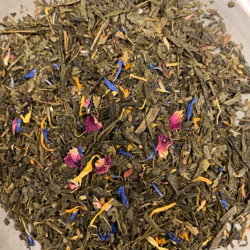 Deze zachte groene thee is perfect om van te genieten tijdens de laatste zomerzon. Beetje zoete toch frisse smaak door bloesems.